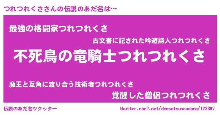 | 女子向けラノベタイトル風あだ名 | 『つれつれくさ姫と円卓の騎士』 |