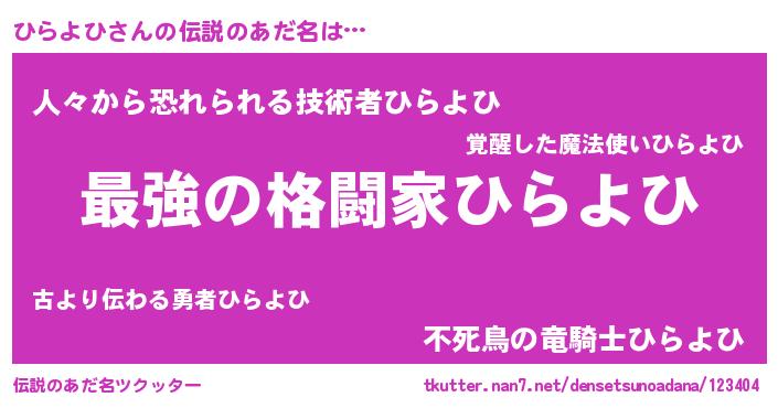 | 意味不明あだ名 | 『ひらよひフォーエバー』『自称ひらよひ』 |
