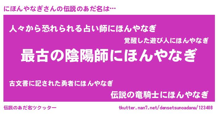 | 意味不明あだ名 | 『にほんやなぎフォーエバー』 |