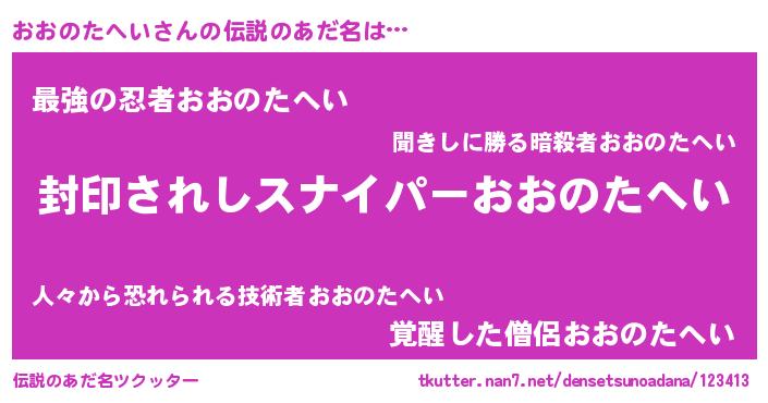 | 胡散臭い通販商品みたいなあだ名 | 『億万長者になれる霊験あらたかなお札…その名も「おおのたへい」』 |