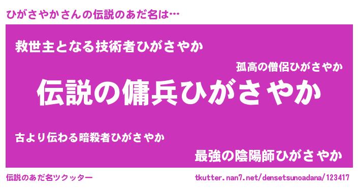 | 女子向けラノベタイトル風あだ名 | 『(仮)ひがさやかのやんごとなき事情』 |