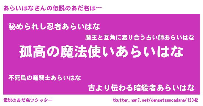 | 女子向けラノベタイトル風あだ名 | 『あらいはなは平凡を望む』 |