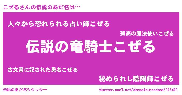 | ヒーロー風カッコイイあだ名 | 『スーパーコゼル』『友情の使者こぜる』 |
