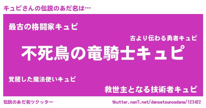 | 意味不明あだ名 | 『住所不定無職キュピ(5歳)』 |