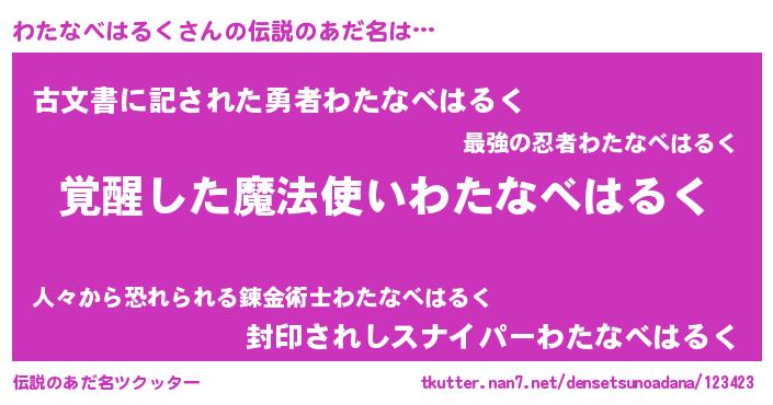 | 意味不明あだ名 | 『自称わたなべはるく』 |