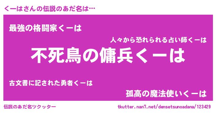 | 女子向けラノベタイトル風あだ名 | 『くーは姫と円卓の騎士』 |