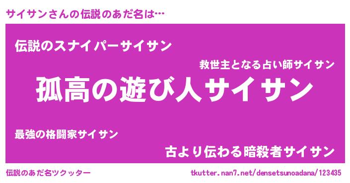 | 意味不明あだ名 | 『住所不定無職サイサン(98歳)』 |