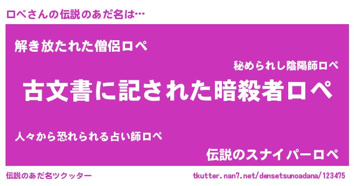 | ファンタジー風あだ名 | 『ゼロペトゥ』『ロペディッシュ』 |