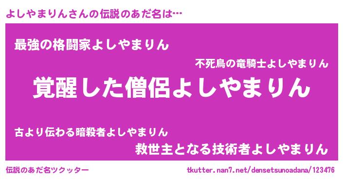 | 女子向けラノベタイトル風あだ名 | 『よしやまりん様がみてる』 |