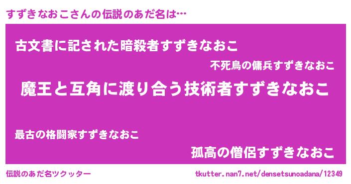 | ヒーロー風カッコイイあだ名 | 『慈愛の使者すずきなおこ』 |