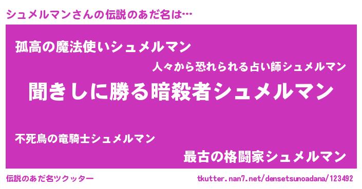 | ヘコむあだ名 | 『シュメルマン(爆)』『シュっ子』 |