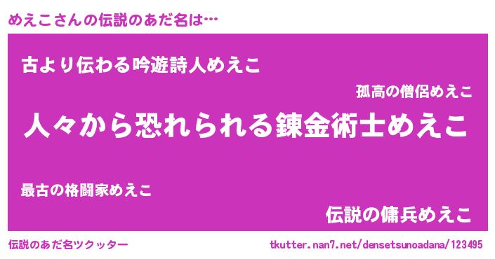 | 欧米人風あだ名 | 『ダニエルめえこ』『ケンブリッジめえこ』 |