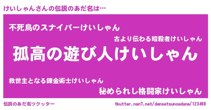 | ヒーロー風カッコイイあだ名 | 『暗黒騎士ケイ』『スーパーケイシャン』 |