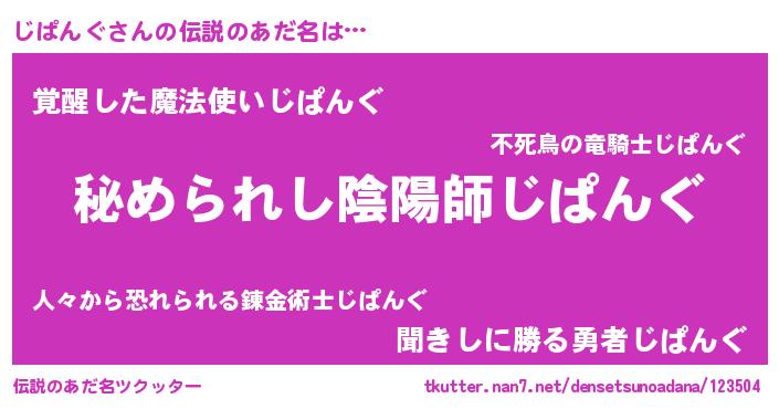 | ファンタジー風あだ名 | 『エターナルジパングー』『ゼジパトゥ』 |