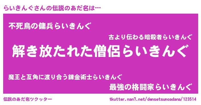 | ヒーロー風カッコイイあだ名 | 『魔戒騎士ライ』『スーパーライキング』 |