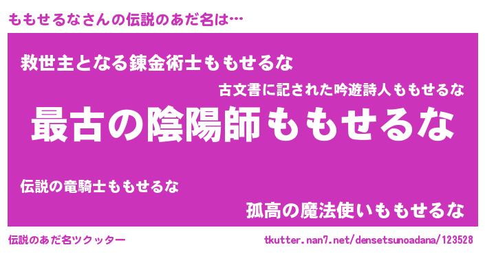 | ファンタジー風あだ名 | 『エターナルモモセルナー』『ゼモモトゥ』 |