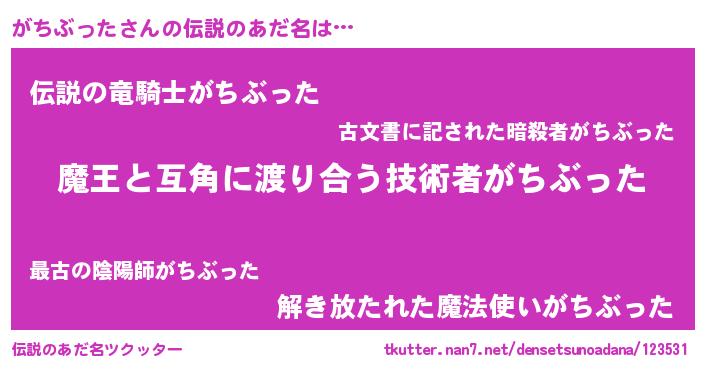 | ヒーロー風カッコイイあだ名 | 『愛の使者がちぶった』『仮面ガチダー』 |