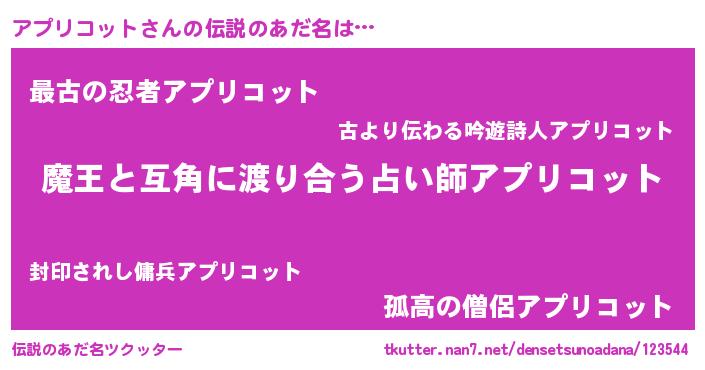 | ヒーロー風カッコイイあだ名 | 『慈愛の使者アプリコット』 |