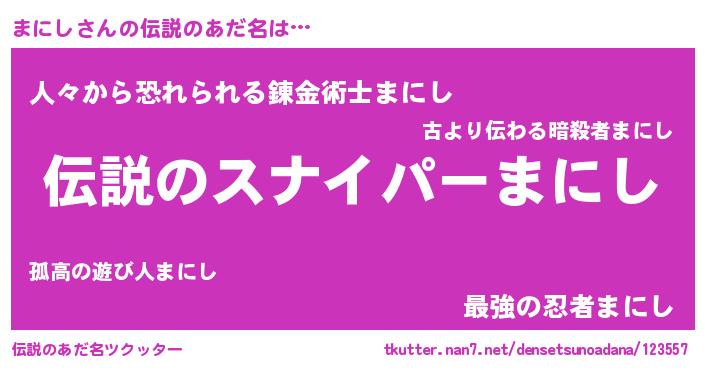| 男性向けラノベタイトル風あだ名 | 『まにしの憂鬱』『魔法科高校のまにし』 |