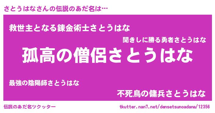 | 男性向けラノベタイトル風あだ名 | 『サトウハナスレイヤー』 |