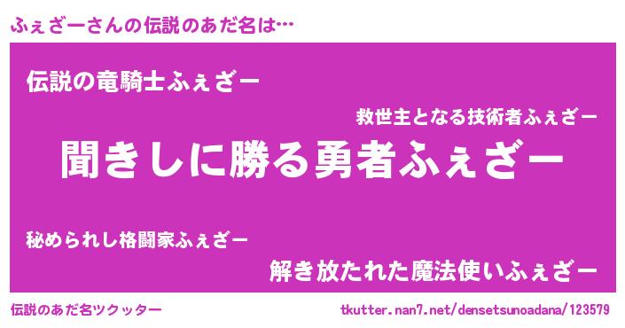 | ヘコむあだ名 | 『ふぇざー(遠い目)』『ふぇふぇ~』 |