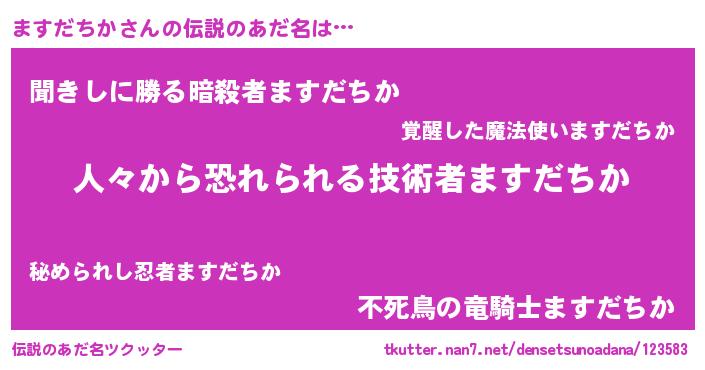 | ヘコむあだ名 | 『ますだちか(小並感)』『ますにゅー』 |