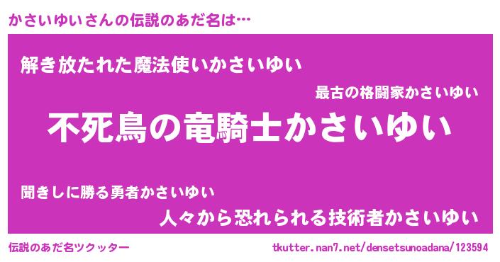 | 男性向けラノベタイトル風あだ名 | 『この素晴らしい世界にかさいゆいを!』 |