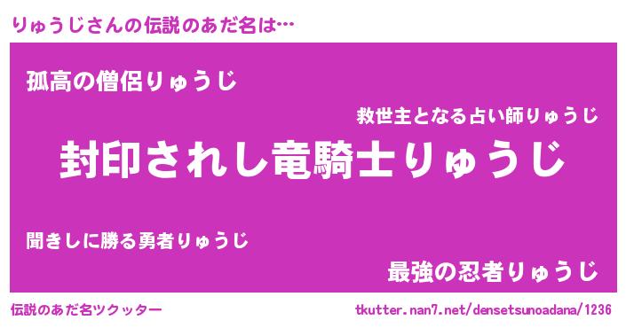 | ヒーロー風カッコイイあだ名 | 『スーパーリュウジ』『銀牙騎士リュ』 |