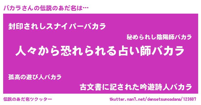 | ヘコむあだ名 | 『バカにゅー』『バカラ(遠い目)』 |