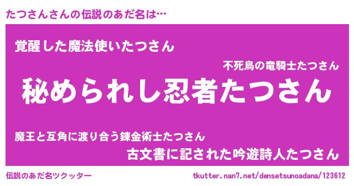 | ファンタジー風あだ名 | 『エターナルタツサンー』 |