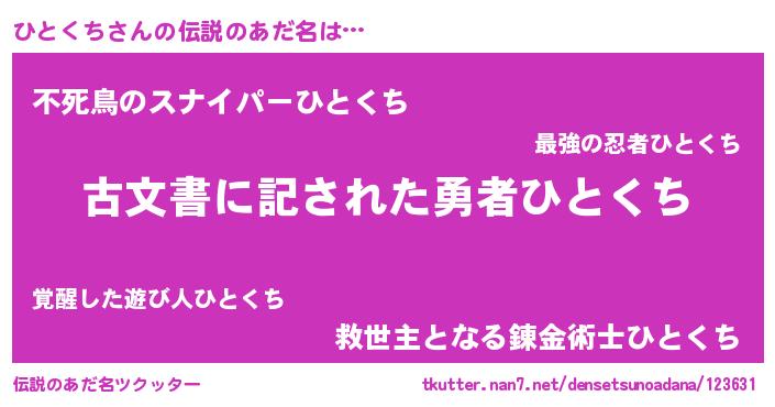 | ヒーロー風カッコイイあだ名 | 『ネオヒトクチ』『スーパーヒトクチ』 |