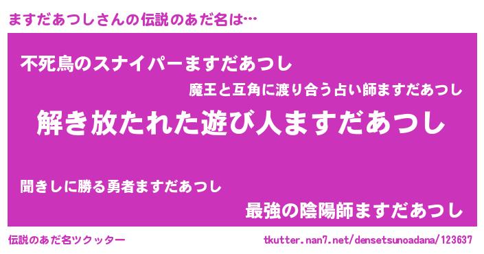 | 男性向けラノベタイトル風あだ名 | 『ダンジョンにますだあつしを求めるのは間違っているだろうか』 |