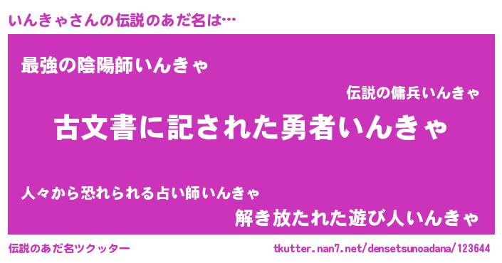 | ヒーロー風カッコイイあだ名 | 『ネオインキャ』『ウルトラいんきゃマン』 |
