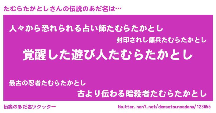 | ポケモン風あだ名 | 『ヒタムラタカトシ』『タックウザ』 |