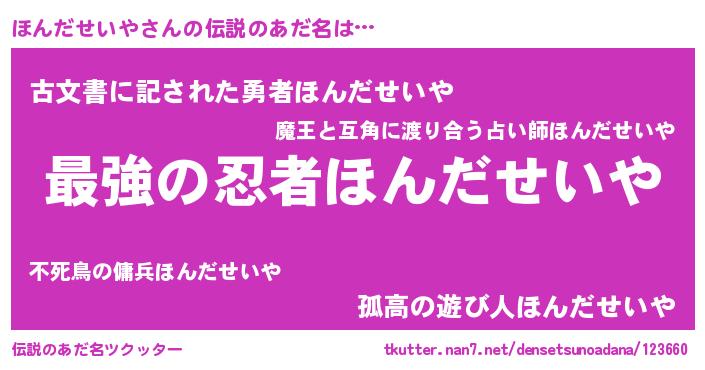 | ヒーロー風カッコイイあだ名 | 『ウルトラほんだせいやマン』 |