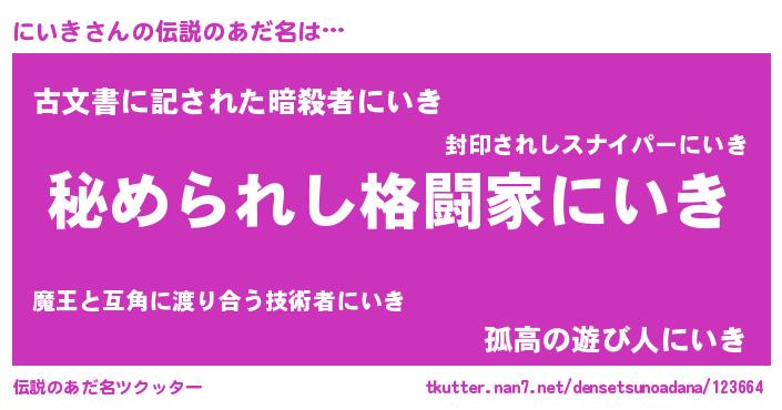| 意味不明あだ名 | 『住所不定無職にいき(3歳)』 |
