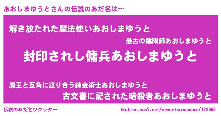 | ヒーロー風カッコイイあだ名 | 『スーパーアオシマユウト』 |