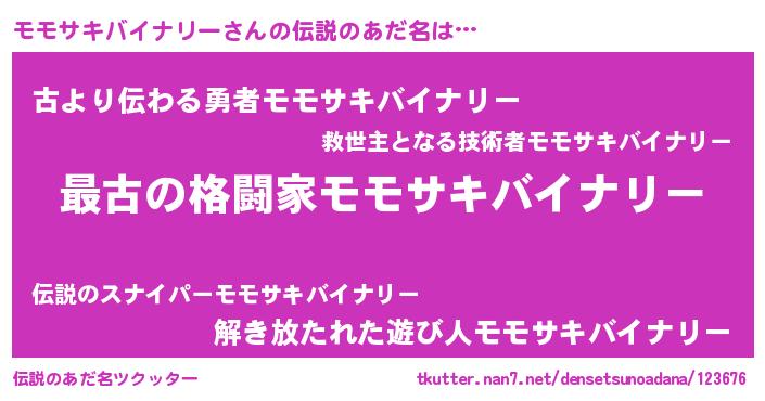 | 欧米人風あだ名 | 『モモサキバイナリークリステル』 |