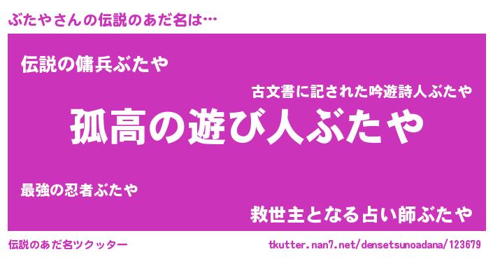 | 女子向けラノベタイトル風あだ名 | 『ぶたやは平凡を望む』『闇のぶたや』 |
