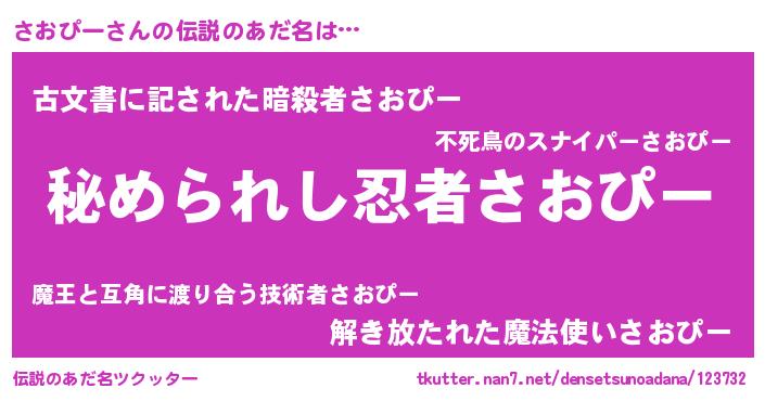 | ヒーロー風カッコイイあだ名 | 『ウルトラさおぴーマン』『ネオサオピー』 |
