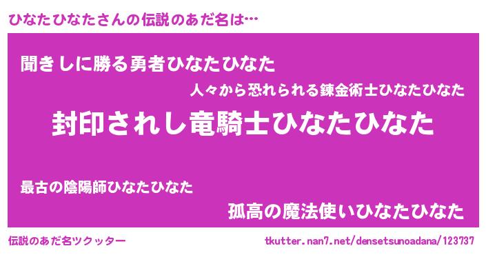 | 男性向けラノベタイトル風あだ名 | 『ヒナタヒナタアートオンライン』 |