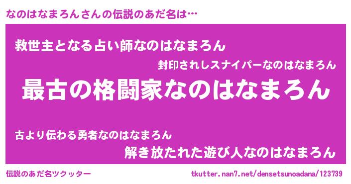 | 意味不明あだ名 | 『なのはなまろんフォーエバー』 |