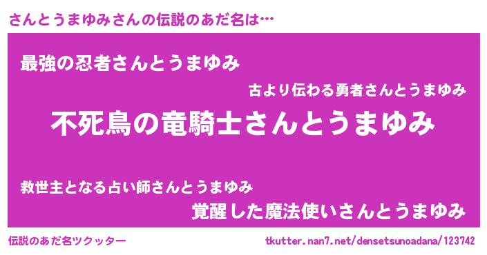 | 男性向けラノベタイトル風あだ名 | 『転生したらさんとうまゆみだった件』 |