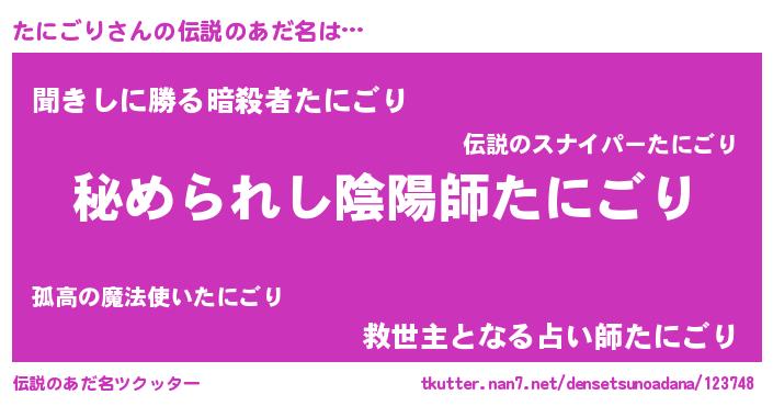 | 意味不明あだ名 | 『めかぶ科たにごり属』『自称たにごり』 |
