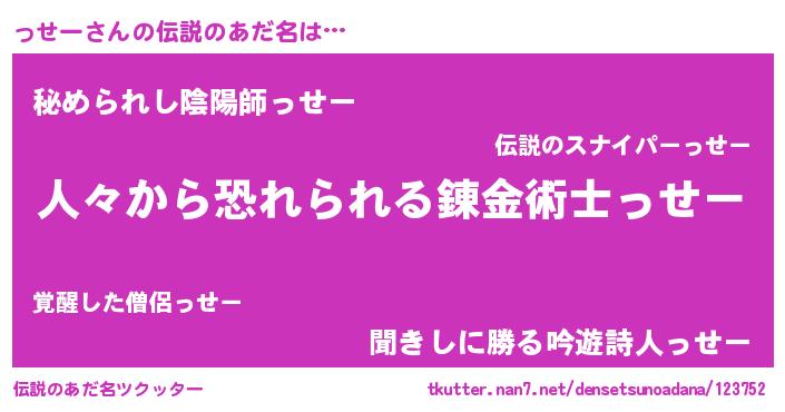 | 意味不明あだ名 | 『眠気覚ましガムっせー味』『自称っせー』 |