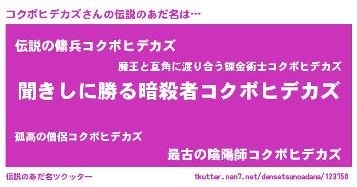 | ヒーロー風カッコイイあだ名 | 『ウルトラ戦士コクボヒデカズ』 |