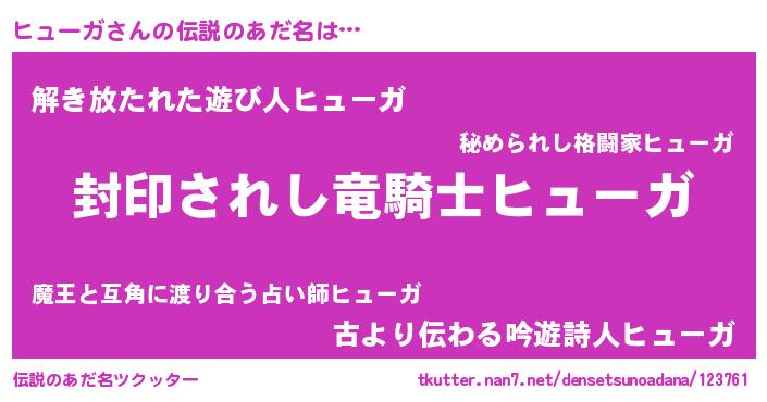 | ヒーロー風カッコイイあだ名 | 『スーパーヒューガ』『銀牙騎士ヒュ』 |