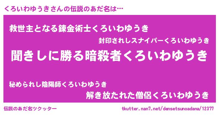 | ヘコむあだ名 | 『くろいわゆうき(爆)』『くろぷりん』 |