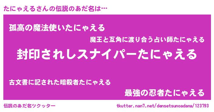 | 胡散臭い通販商品みたいなあだ名 | 『億万長者になれる霊験あらたかなお札…その名も「たにゃえる」』 |