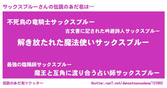 | 胡散臭い通販商品みたいなあだ名 | 『伝統あるサプリメント…その名も「サックスブルー」』 |